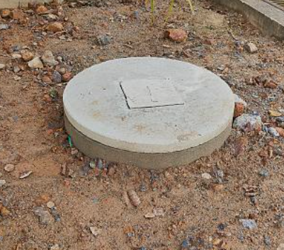Completed concrete apron and manhole cover as finishing construction activities onsite sanitation