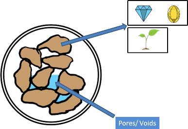 Water (Vw) – Occupies some or all of the void spaces between soil grains.