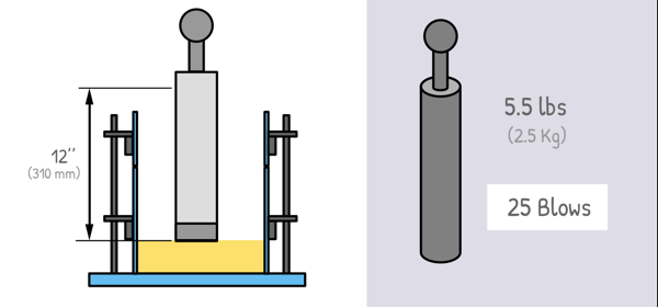 • Mould diameter: 100 mm Mould height: 127.3 mm Rammer weight: 2.6 kg Free fall: 310 mm Mould capacity: 1000 ml